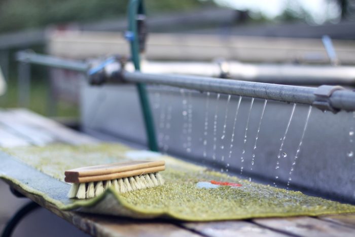 Sanayi tipi kuru vakum makinası blower ile arkalı önlü vakumlanarak kaba kir ve tozlardan arındırılır. Bu safhalardan sonra halılar yıkama alanına alınarak bol su ile ıslatılır. Antibakteriyel, antistatik, antialerjik ERA 111 halı şampuanı tatbik edilerek endüstriyel fırça makinası ile ön ve arka yüzü optimum oranda fırçalanarak kirlerin çözülmesi sağlanır.