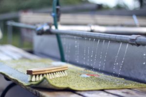 Yıkama esnasında en büyük sorun halıların renklerinin birbirine karıstırılmasıdır. Bu tür halıların yıkanması mutlak suretle tek tek yapılmalıdır. El dokuma ,yün halı yıkamada kaba kir ve tozlardan arındırılmış halı ıslatılır ıslatılmaz hiç vakit kaybetmedden fırçalama işlemine geçilir. Fırçalama işlemi sonrası yine hızlı ve seri bir şekilde gelberi ile durulama yapılır. Halı uzun tüylü ise halı sampuanının tüy dip ve hav aralarına nüfuz etmesi için tek yönlü gelberiden önce ileri geri gelberi uygulamasıda yapılabilir. Kullanılan sampuanın bu halıların niteliklerine uygun olmasıda önemlidir. içeriğinde era faktörü bulunan ve ustalarımızca da önerilen ERA 111 halı şampuanı içeriğinde hidrosülfür de barındırması nedeniyle bu işe uygundur. Ayrıca bu tür halıarın yıkanmasın da; halı sampuanı karısımlı suyun içine şampuan ile uyumlu aktif klor atılması parlaklık ve hijyen sağlamada etkilidir. Gelberi ve durulama sonrası hiç vakit kaybetmeden yıkanan halı ;sıkma işine alınır. Sıkma esnasında kullanılarn boyanın akma ihtimaşinden dolayı yine tek basına sıkılır. Sıkma kazanından alınan halı hemen açılır ve askıya yerlestirilir. El dokuma ve yün halı yıkamada bütün ustalık ve hünerin püf noktası hızlı hareket etmedir. Özetle aşağıda yazılan uygulama zinciri takip edildiği sürece halıların boyalarının akması sonucu ,birbirine karışması ihtimali ortadan kaldırılmıs olur.